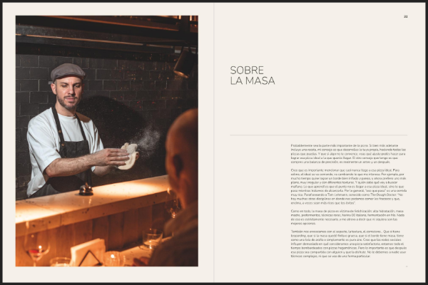 A lo largo de 114 páginas comparto mi manera de pensar la pizza: el trabajo con la masa, la elección y combinación de ingredientes, y los procesos que dan forma a cada receta.